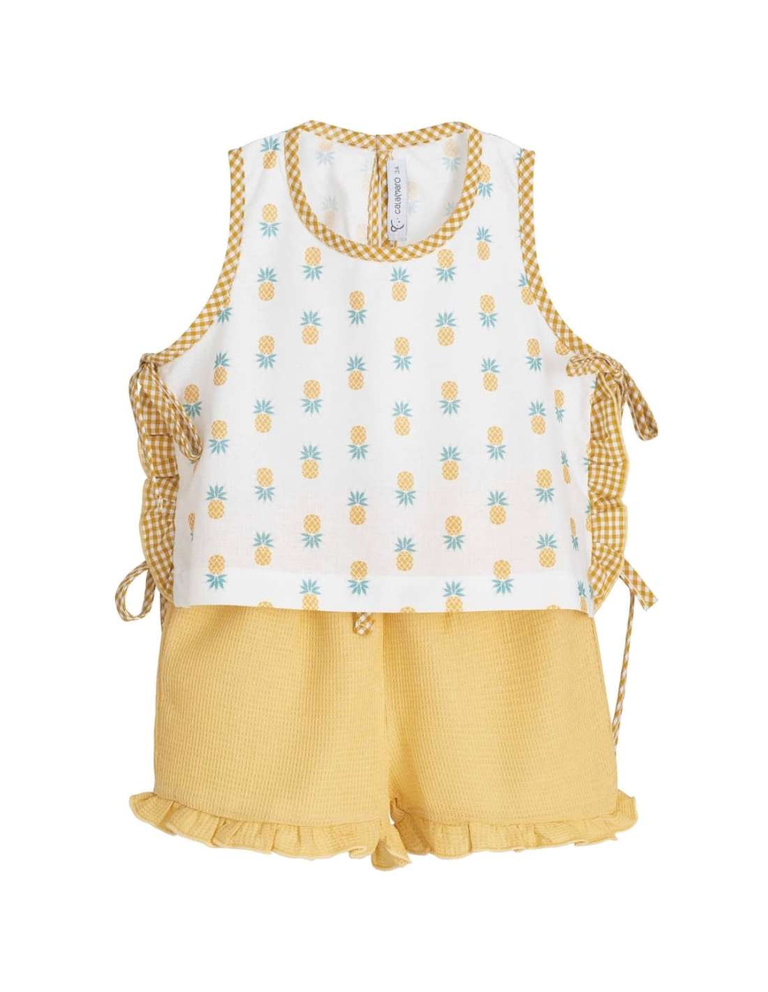 Conjunto Pantalón Gaya, diseñado para ofrecer comodidad, frescura y un estilo cuidado durante la temporada estival. Confeccionado en 100% algodón, proporciona una textura suave y transpirable, ideal para la piel sensible del niño incluso en los días más calurosos.