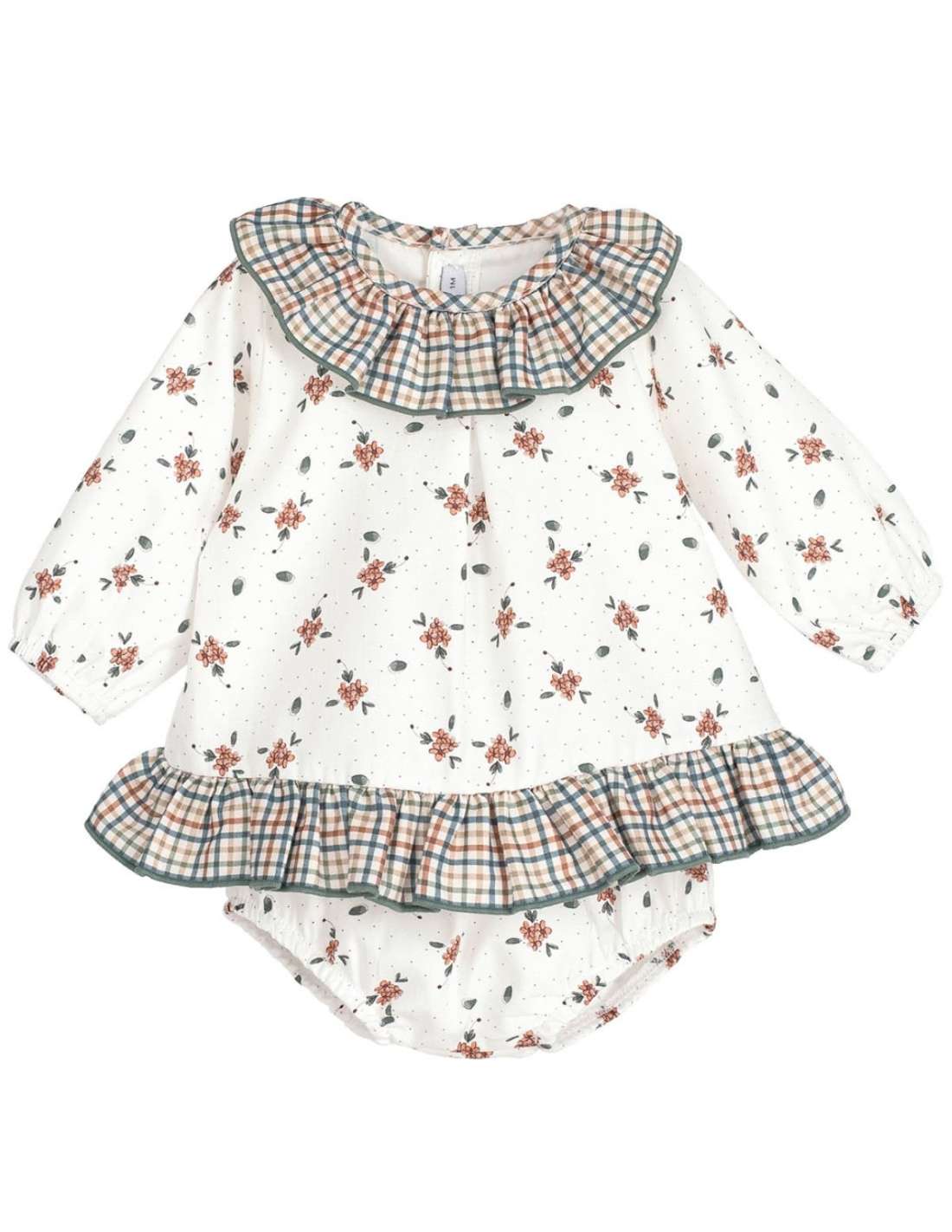 El jesusito Chamsin con tartán de la colección Calamaro Invierno 2025 está confeccionado en 100% algodón, ofreciendo suavidad, comodidad y un toque cálido para la temporada. Su diseño clásico con detalles en tartán aporta elegancia y estilo, convirtiéndolo en una prenda ideal para boutiques infantiles que buscan ropa al por mayor de alta calidad, con tejidos naturales y acabados impecables.