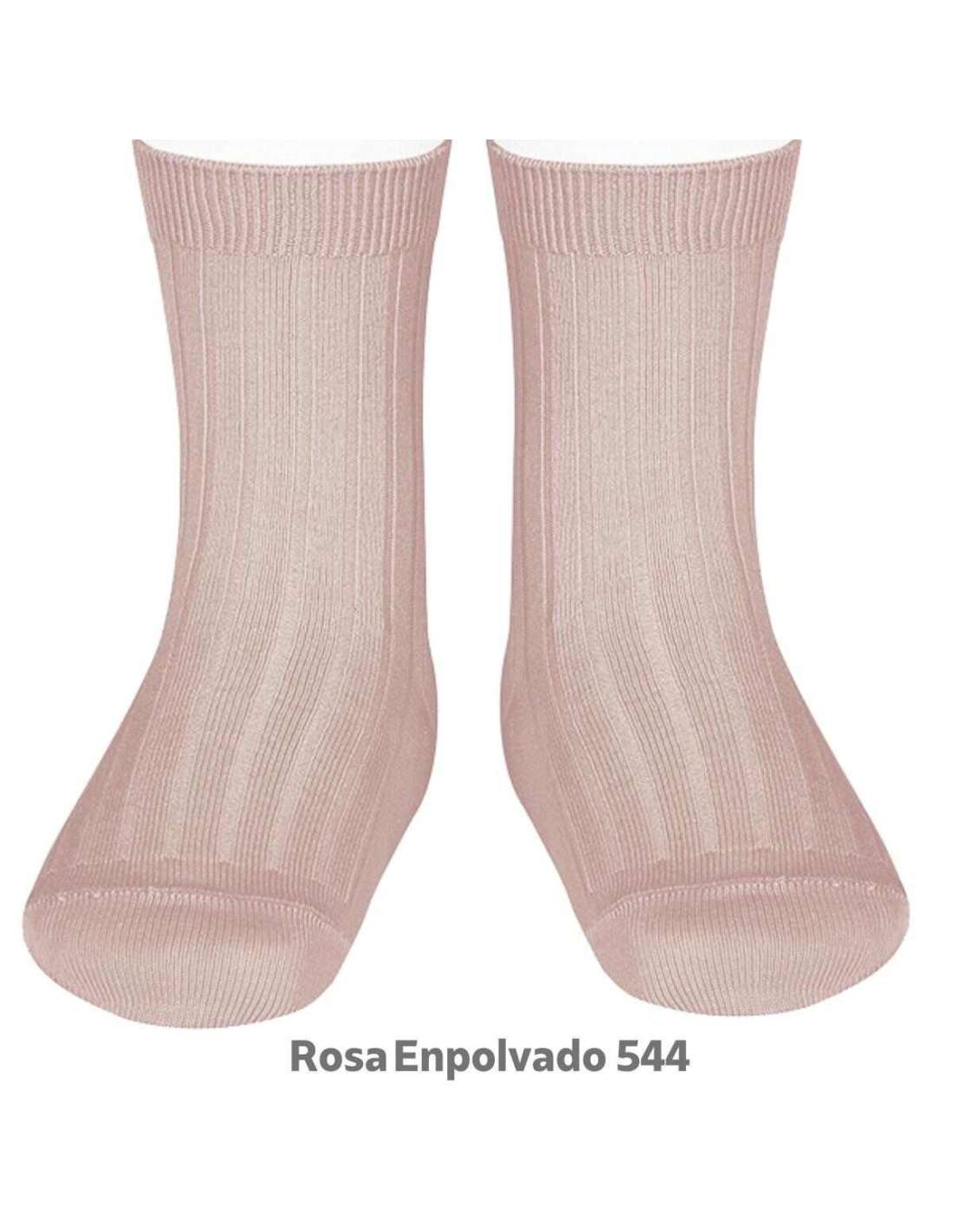 Calcetín corto confeccionado en punto de canalé en elegante color rosa empolvado. Una prenda clásica imprescindible que destaca por su comodidad, ajuste perfecto y excelente calidad. Su diseño atemporal y su tono suave lo convierten en el complemento ideal para combinar con todo tu armario, aportando un estilo sofisticado, femenino y discreto.