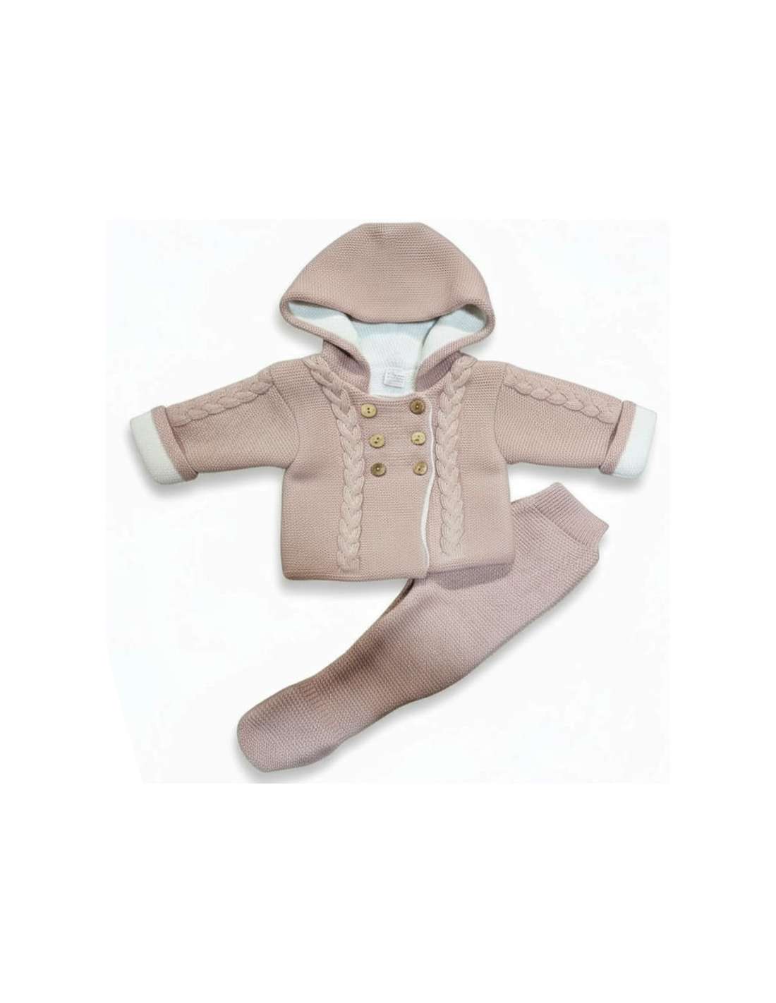 Lana y Perlé 100308 ROSA PALO ABRIGO DE PUNTO CON CAPUCHA MARCA ALMA 100308 ROSA PALO Fabricado en España View 18 M 24 M 36 M