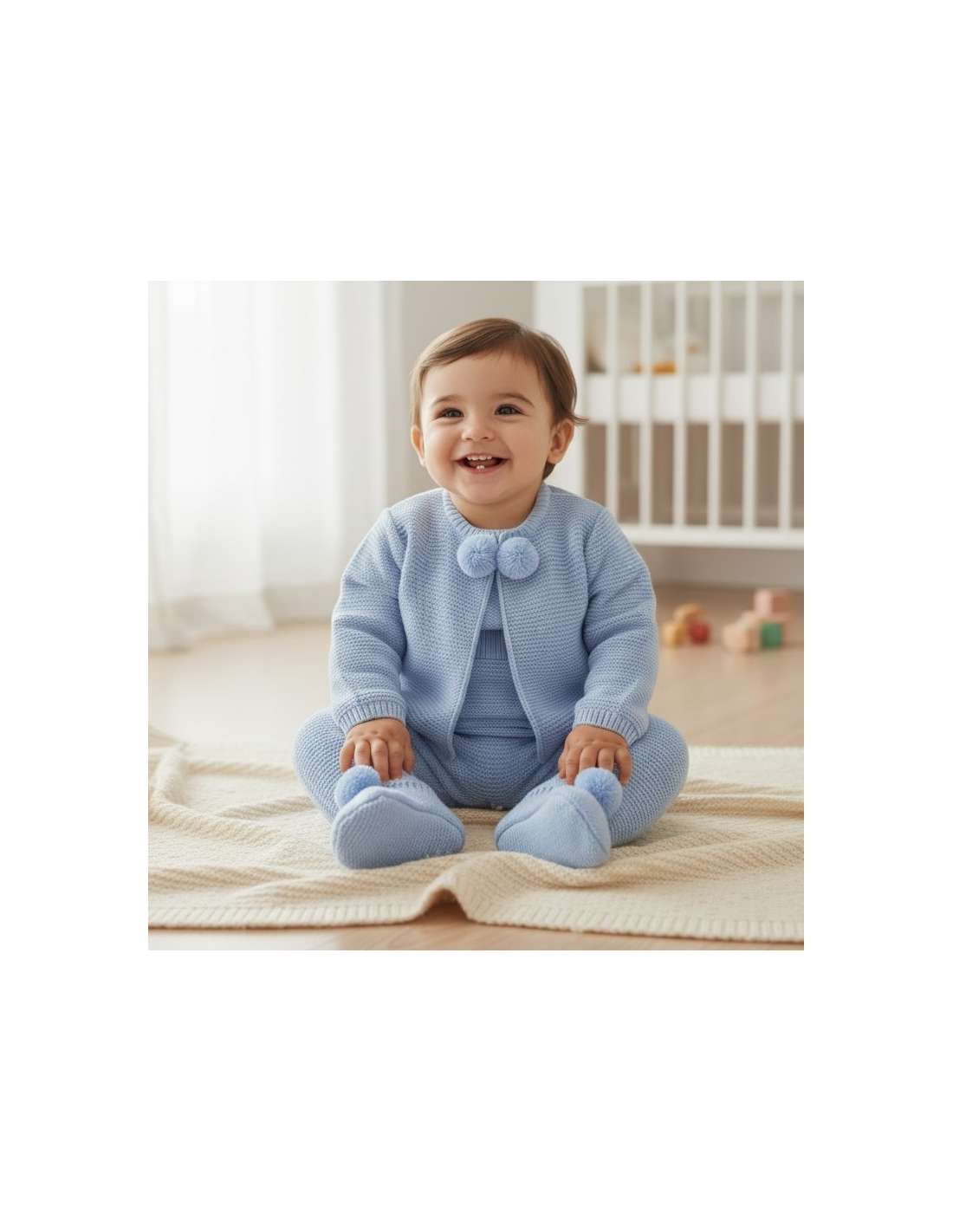 Lana y Perlé 1060530 CELESTE CONJUNTO BEBE HILO MARCA VISI 1060530 BLUE Fabricado en España View 3 M 6 M