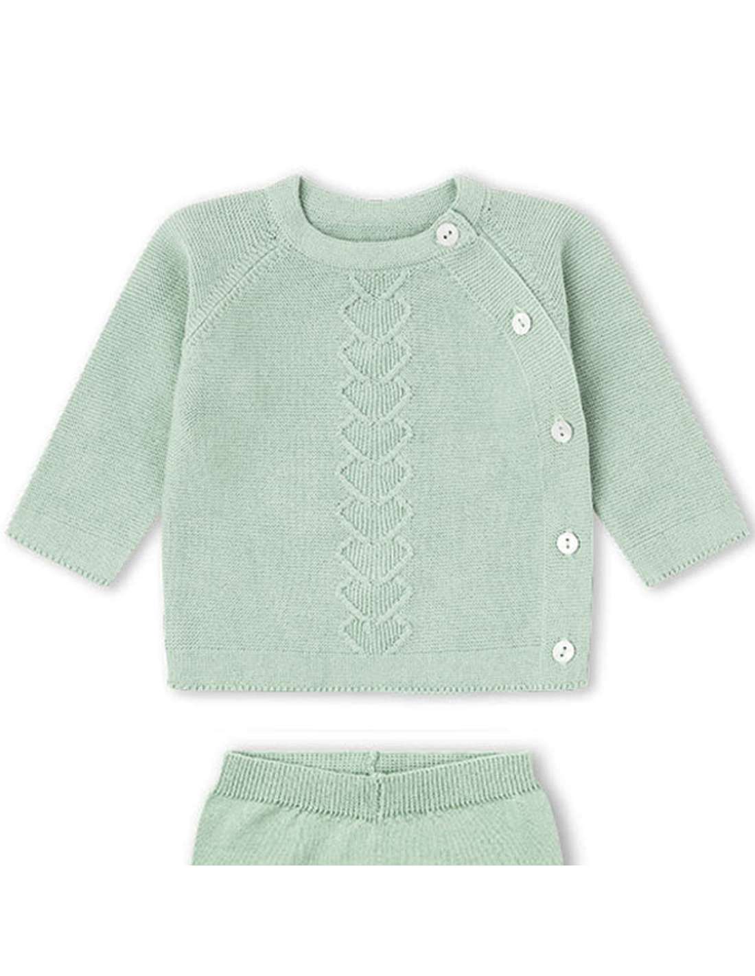Este conjunto de dos piezas está compuesto por jersey y polaina a juego, ofreciendo un look sencillo, funcional y delicado. Su diseño está pensado para proporcionar suavidad, confort y libertad de movimiento, garantizando el bienestar del bebé en todo momento.