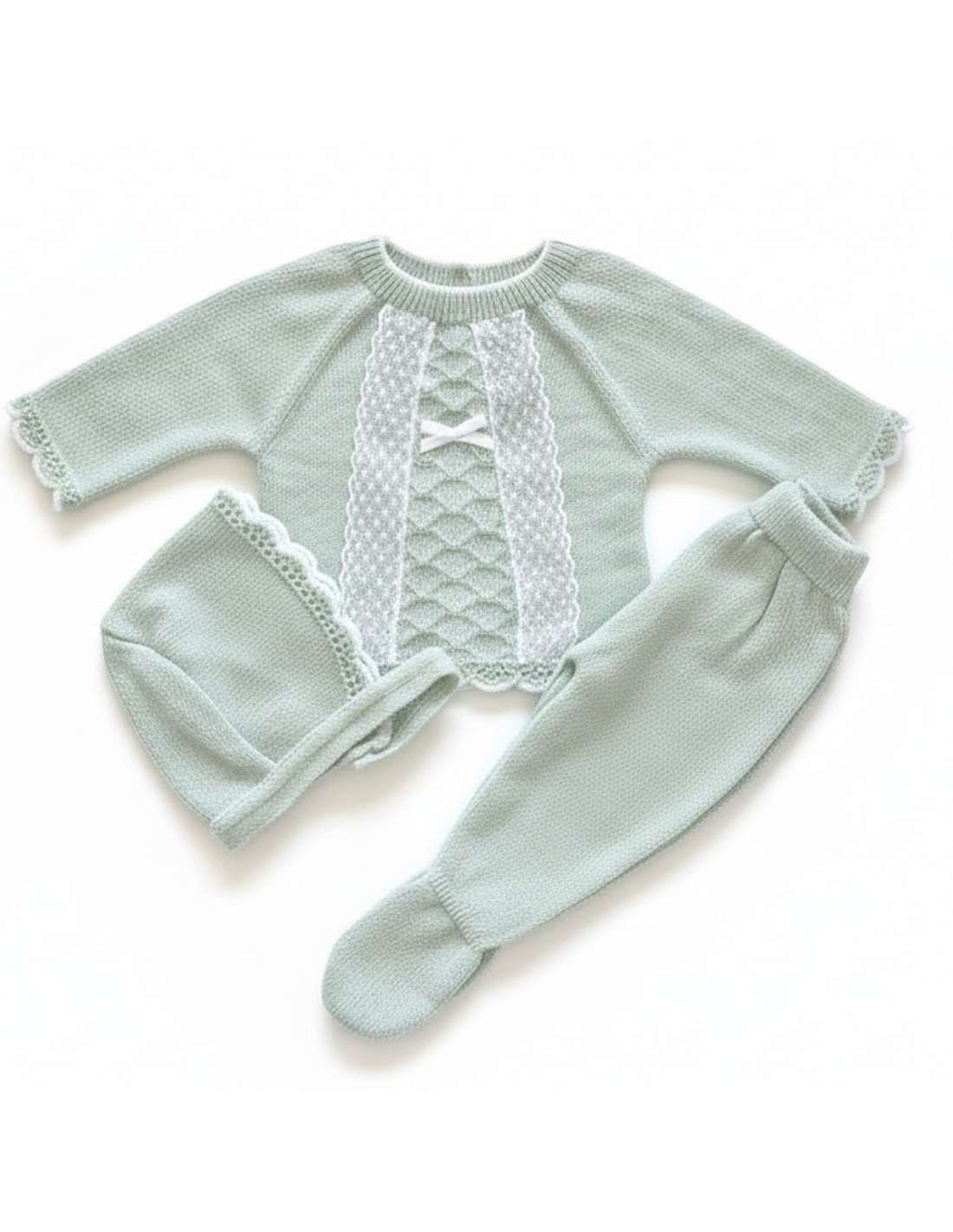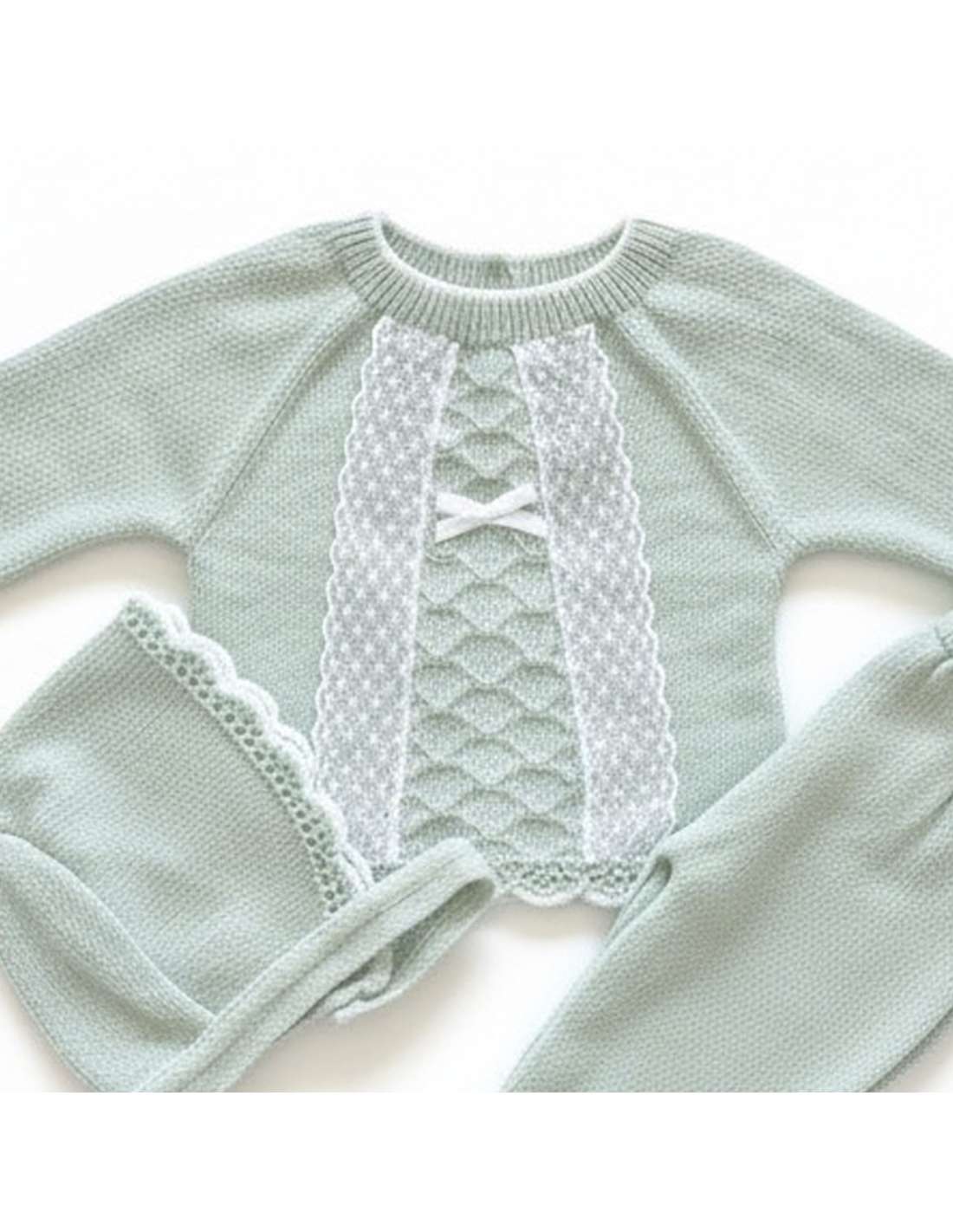 Lana y Perlé 3105 BEIGE Conjunto de punto para bebé 2 piezas marca MYBABYCHIC 3105 BEIGE Fabricado en España View 0 M 3 M