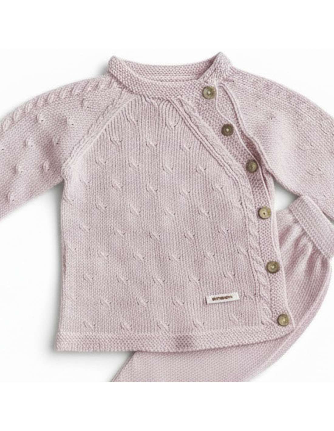 Lana y Perlé 03213C ROSA PALO Conjunto de bebé de punto perlé DOS PIEZAS MARCA LA CASITA DE PEPITO La Casita de Pepito 03213C ROSA PALO Fabricado en España jersey y cubrepañal View 0 M 1 M