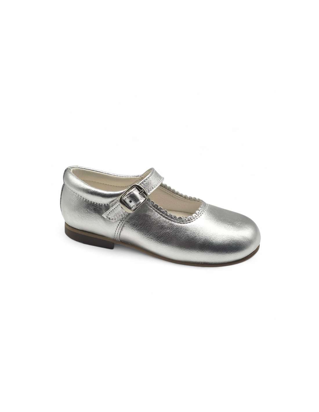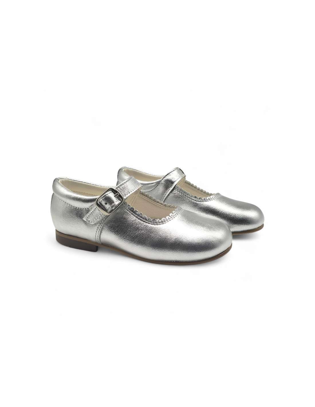 Zapato tipo mercedita con sistema de cierre de hebilla. La parte interior está fabricada con forro de piel natural, protector de punteras y talones.
