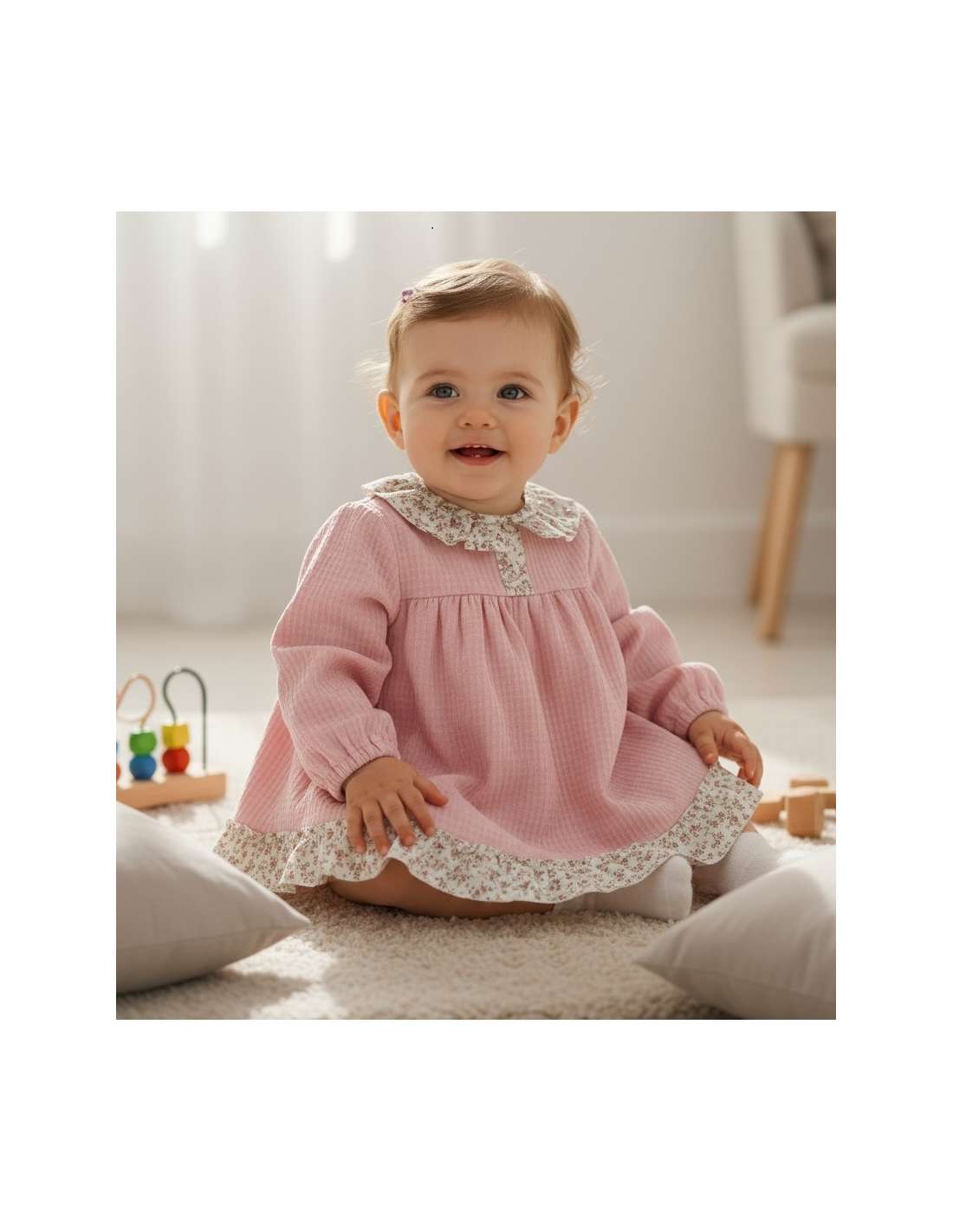 La Chambrita Braguita Rosa Otoño está confeccionada en 100% algodón de alta calidad, cuidando al máximo la suavidad y comodidad para la piel delicada del bebé. Su diseño en tono rosa, con detalles encantadores, es ideal para el día a día o para ocasiones especiales. Producto diseñado y fabricado en España, con confección artesanal y acabados de primera. Disponible para venta al por mayor y con envíos internacionales, llevando la calidad y el diseño español a cualquier parte del mundo.