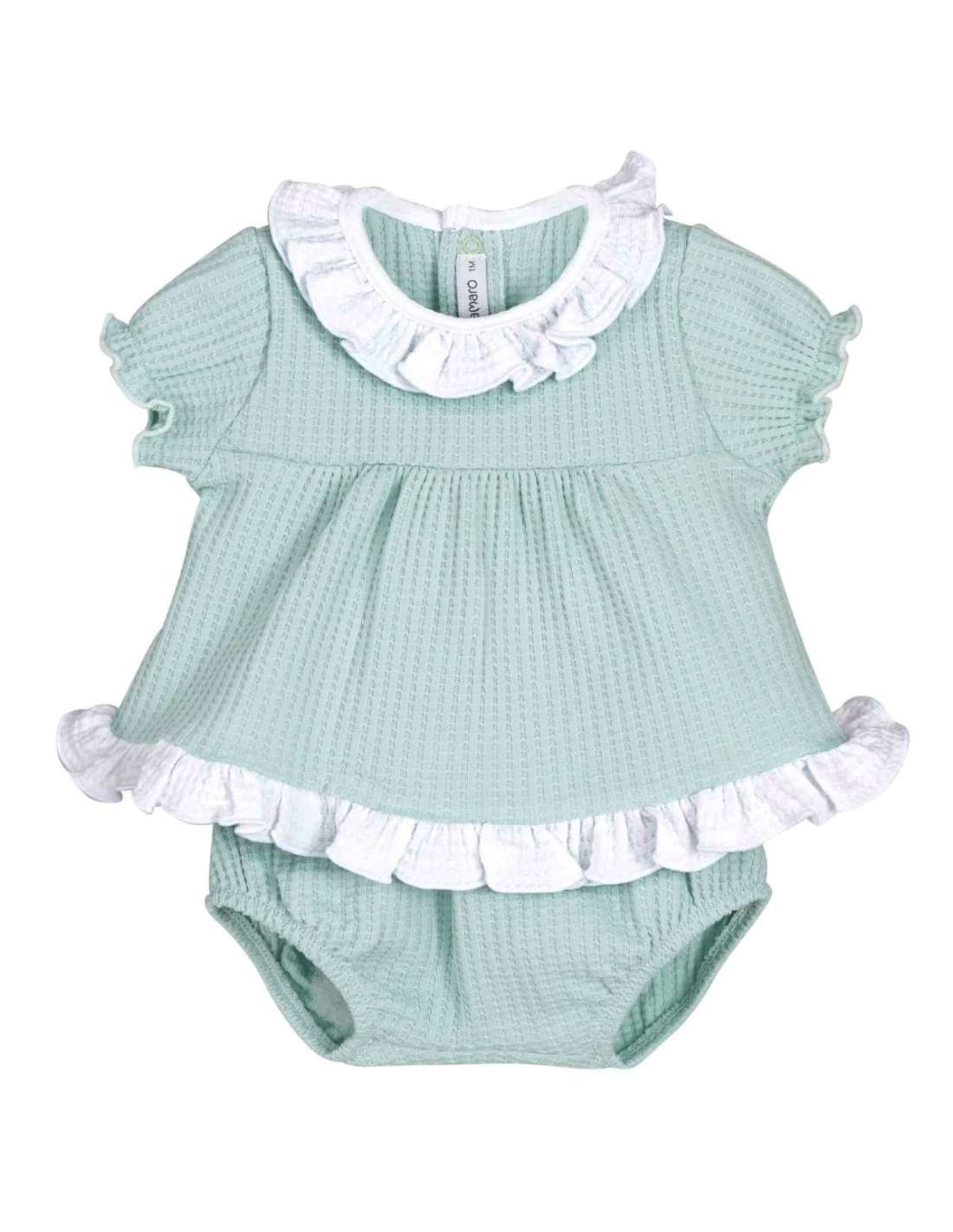 Rodas Mint Bloomers Set, designed to provide comfort, softness, and freedom of movement during the summer season. Made from a blend of 95% c