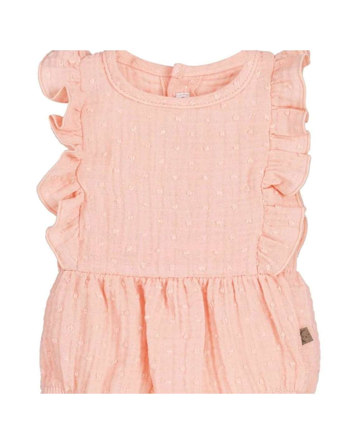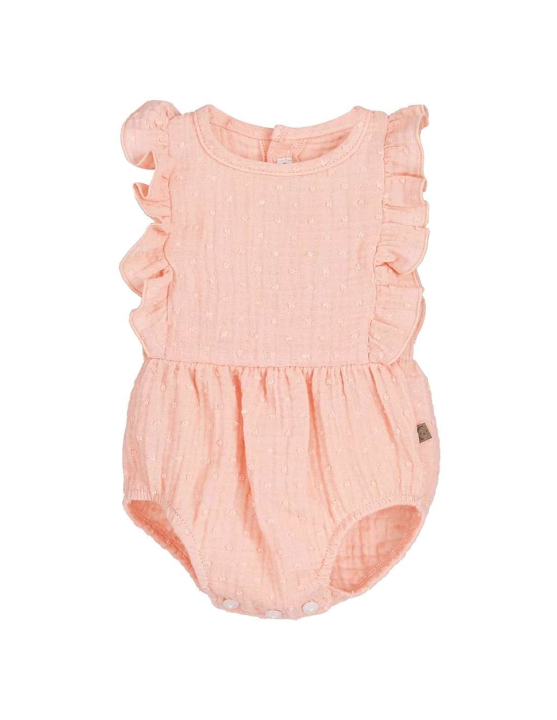 The Atari Coral Romper is a delicate and practical garment, designed to provide comfort and freshness during the summer season. Made from 100% cotton, it offers a soft and breathable texture, ideal for a baby’s sensitive skin.