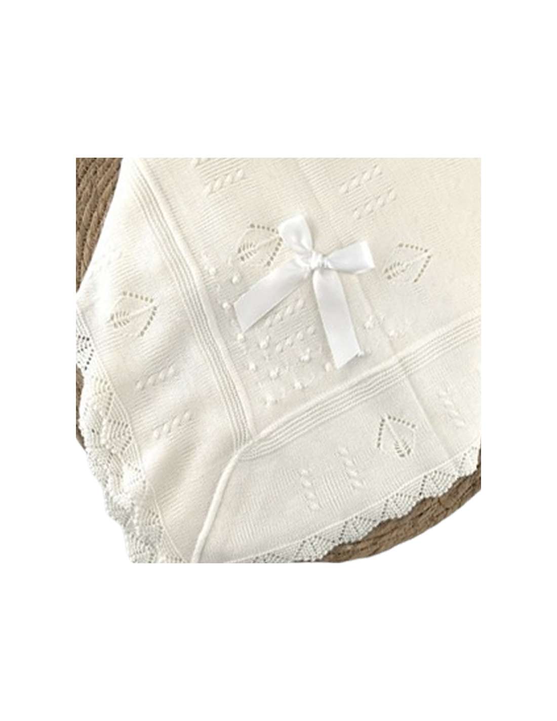 Complements - gifts 1002864 WHITE KNITTED BABY SHAWL BRAND ALMA 1002864 WHITE Made in Spain composition: 100% DRALON THREAD View