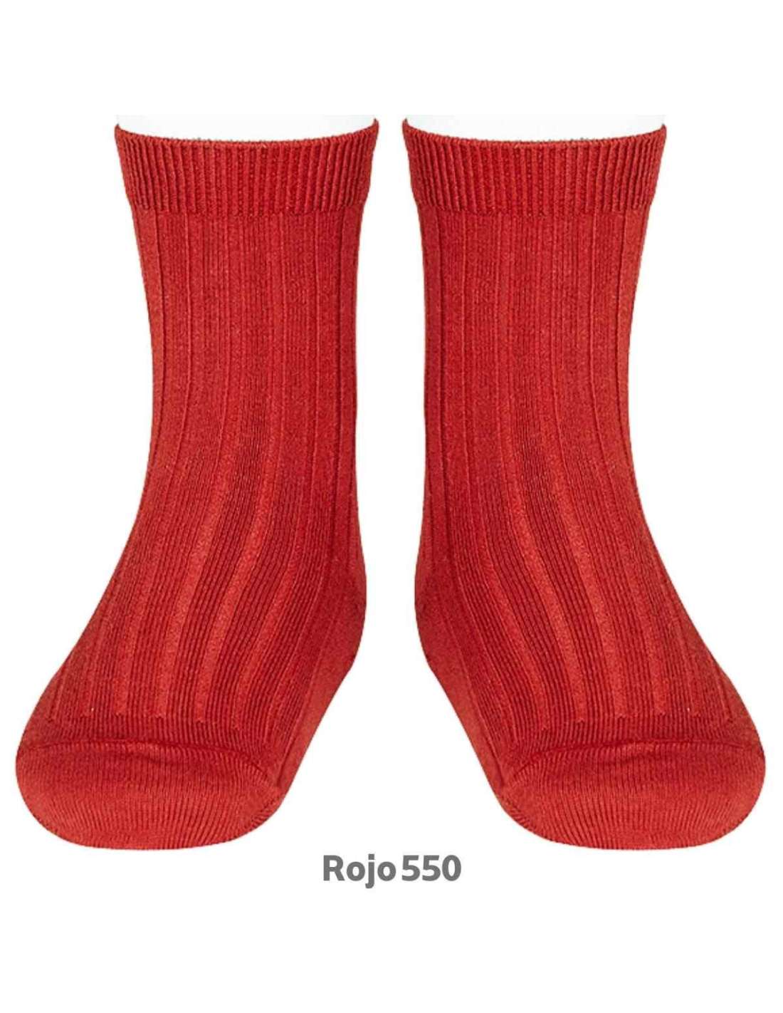 Short ankle socks made from ribbed knit fabric in a bold red color. A timeless essential garment that stands out for its comfort, perfect fit, and excellent quality. Its classic design and striking tone make it the perfect accessory to pair with any outfit in your wardrobe, adding a touch of style, energy, and personality.