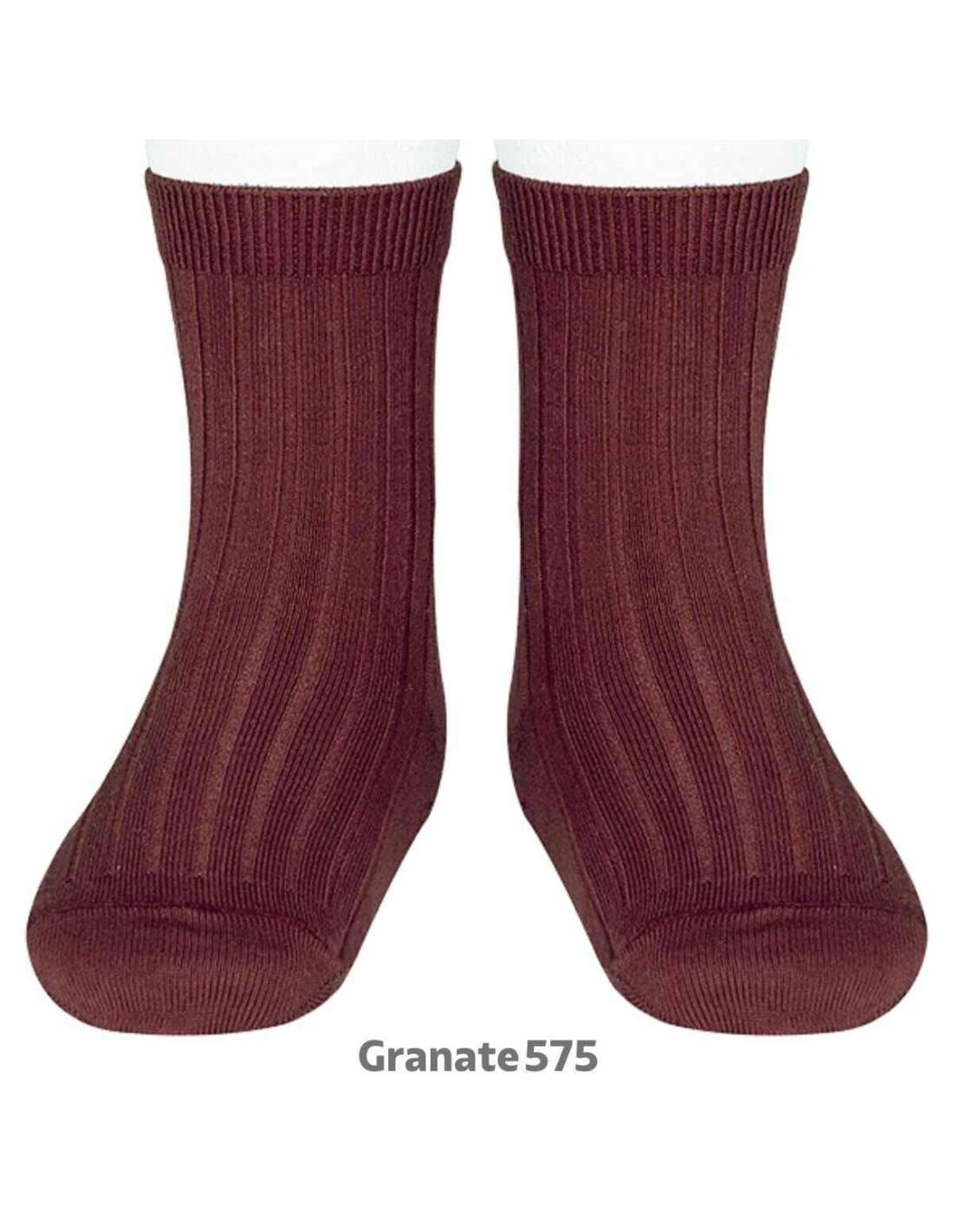 Short ankle socks made from ribbed knit fabric in a sophisticated maroon color. A timeless essential garment that stands out for its comfort, perfect fit, and excellent quality. Its classic design and deep tone make it the perfect accessory to pair with any outfit in your wardrobe, adding a warm, elegant, and distinctive touch.