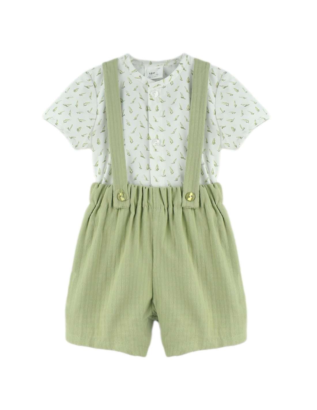 Dress 0-48 months Summer 0260277DS Baby Set with Braces Art.0277 Verona Family Del Sur 0260277DS Composition: Shirt: 100% cotton Trousers: 64% cotton, 27% viscose, 9% linen Product designed and manufactured in Spain. View 18 M 24 M 36 M 48 M