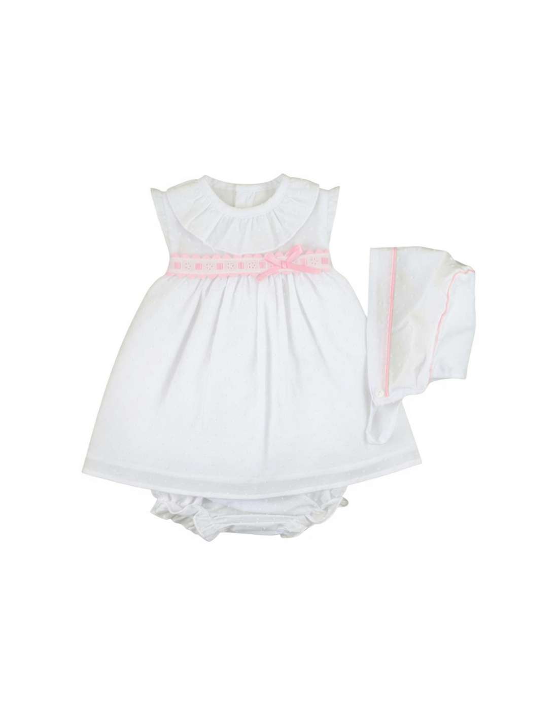 The Ternura Chambrita, Braguita, and Capota set from Babyferr's Summer 2026 Collection is the perfect outfit for the sweetest summer moments. Made from 100% Cotton, this set ensures softness and breathability, keeping your baby comfortable during the hottest days. Designed and crafted with care in Spain, every detail is focused on providing an elegant and delicate piece that highlights your baby's cuteness. The combination of the short-sleeve chambrita, matching bragas, and capota creates a harmonious and sophisticated look, ideal for any special occasion.