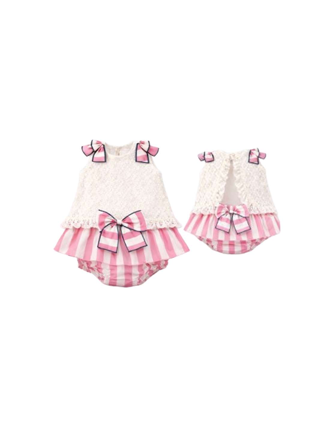 The Diverchic Blonda Baby Girl Set is designed to combine comfort and style during the warm months. Featuring a lightweight blouse and coordinated skirted bloomers, it ensures freedom of movement and freshness for delicate baby skin.