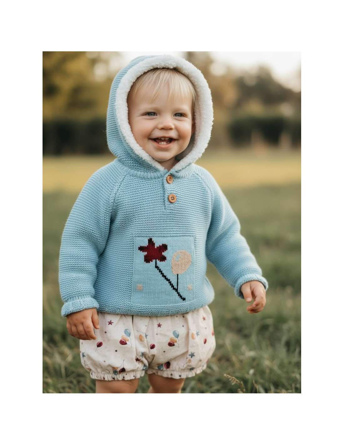 Wool and perle thread 4100310 GREEN WINTER HOODED JACKET FOR BABY BRAND ALMA 4100310 GREEN Made in Spain View 24 M 36 M