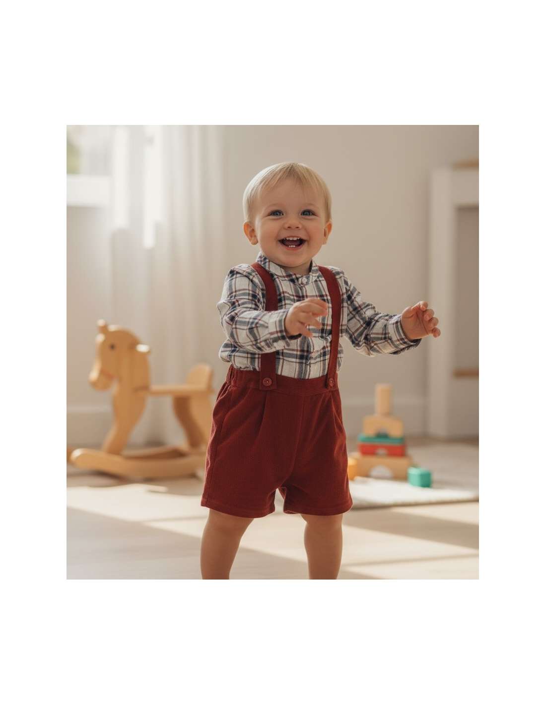Dress 0-48 months Winter 25375 Jelly Boy Set with Suspenders Baby-Ferr 25375 Composition: TROUSERS 42% POLYESTER 40% COTTON 18% VISCOSE SHIRT 100% COTTON Product designed and manufactured in Spain. View 6 M 12 M 18 M 24 M 36 M