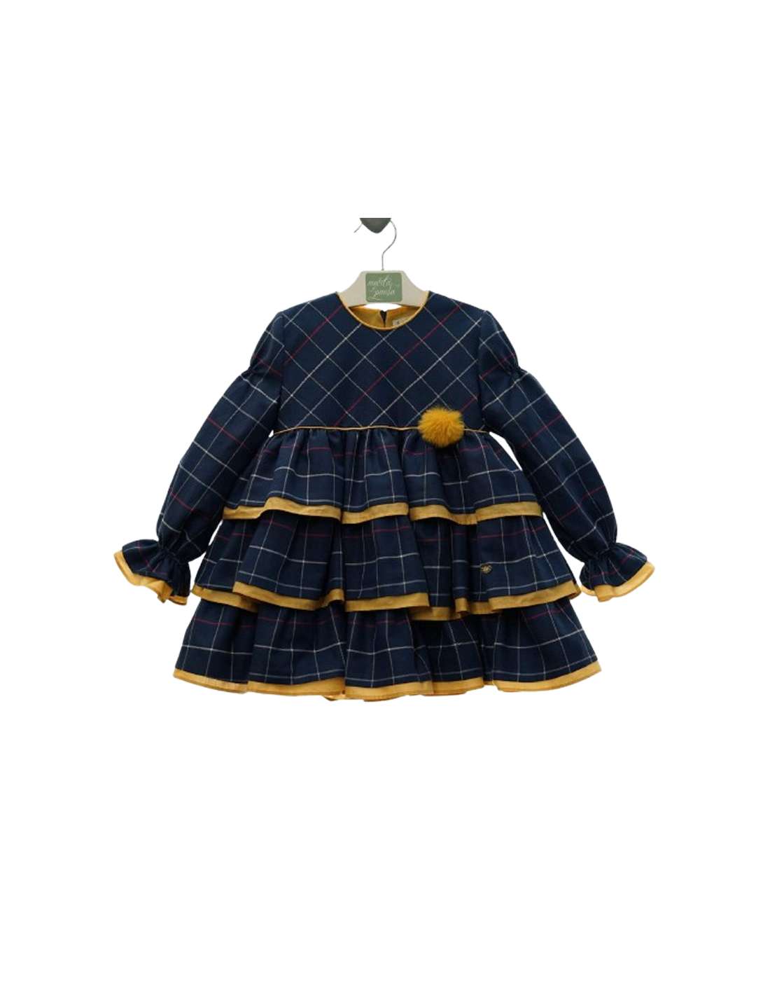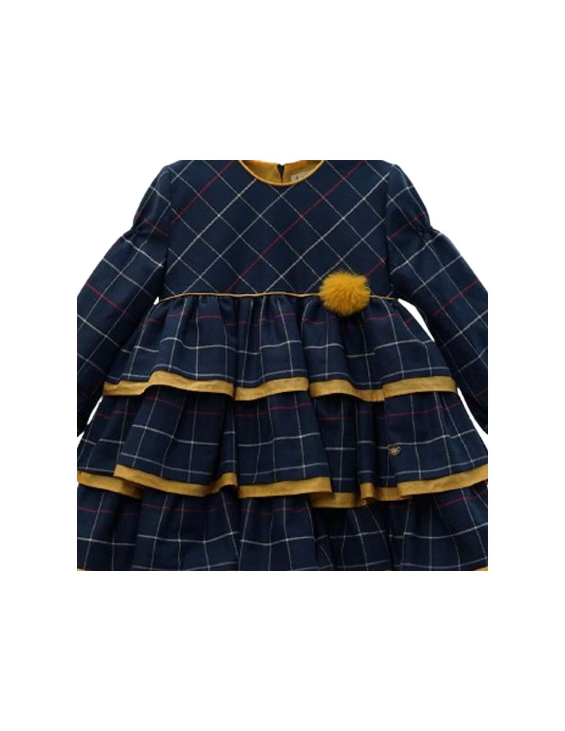 Charming kids’ dress with ruffles and checkered pattern by Marta y Paula, Winter 2025 collection. A beautiful design to dress girls warmly and stylishly during cold days. Available for wholesale purchase with worldwide shipping, perfect for children’s fashion stores seeking Spanish quality and design.