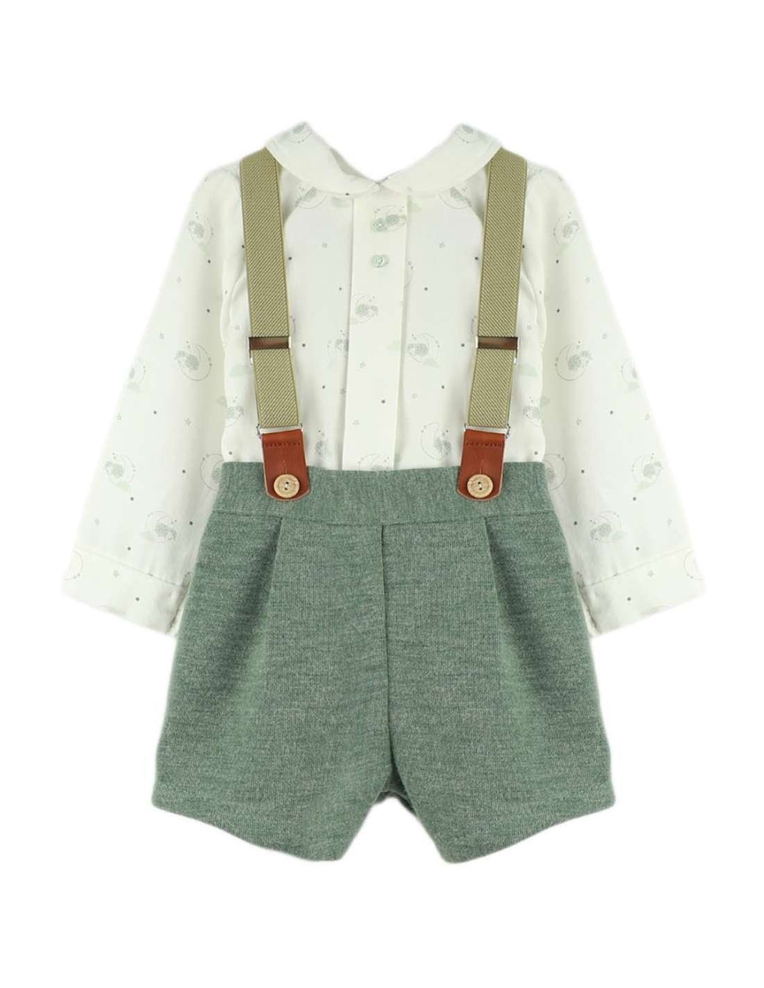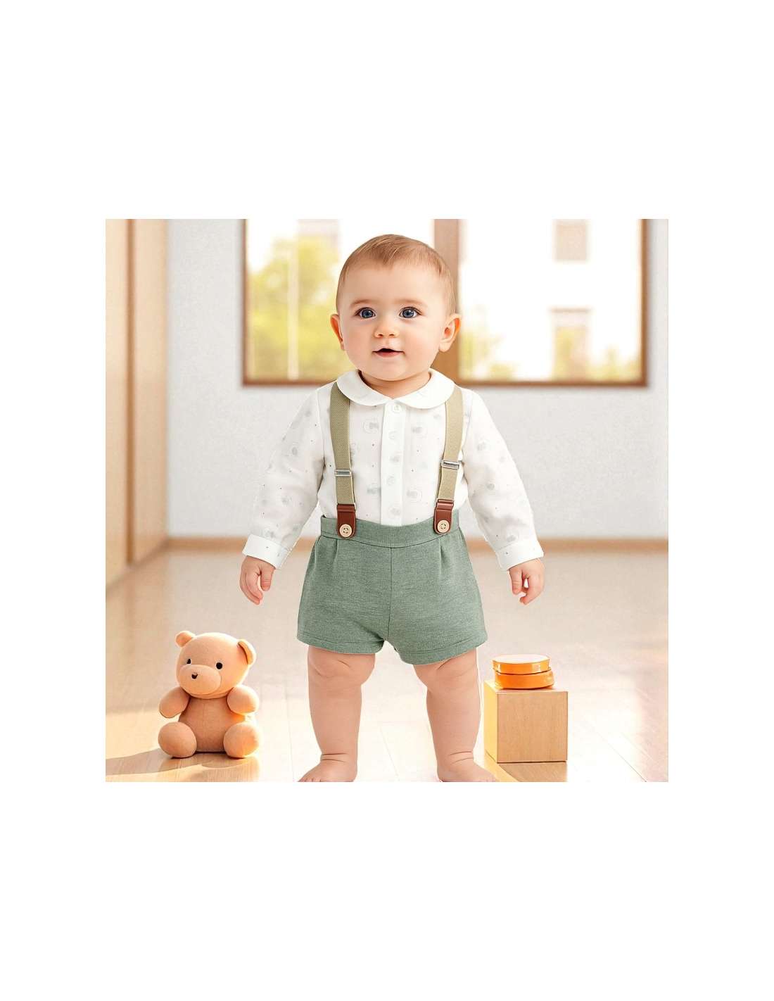 Dress 0-48 months Winter 25375 Jelly Boy Set with Suspenders Baby-Ferr 25375 Composition: TROUSERS 42% POLYESTER 40% COTTON 18% VISCOSE SHIRT 100% COTTON Product designed and manufactured in Spain. View 6 M 12 M 18 M 24 M 36 M