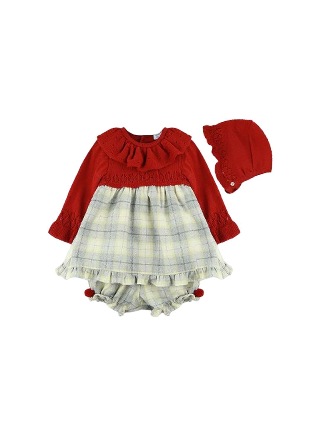 The baby dress with bonnet is a delicate piece from the Winter 2025 collection by renowned Spanish brand Dulce de Fresa, celebrated for its elegant, high-quality babywear. Crafted in a soft blush pink hue, this set includes a dress and matching bonnet with a charming autumn leaves print — perfect for chilly days.