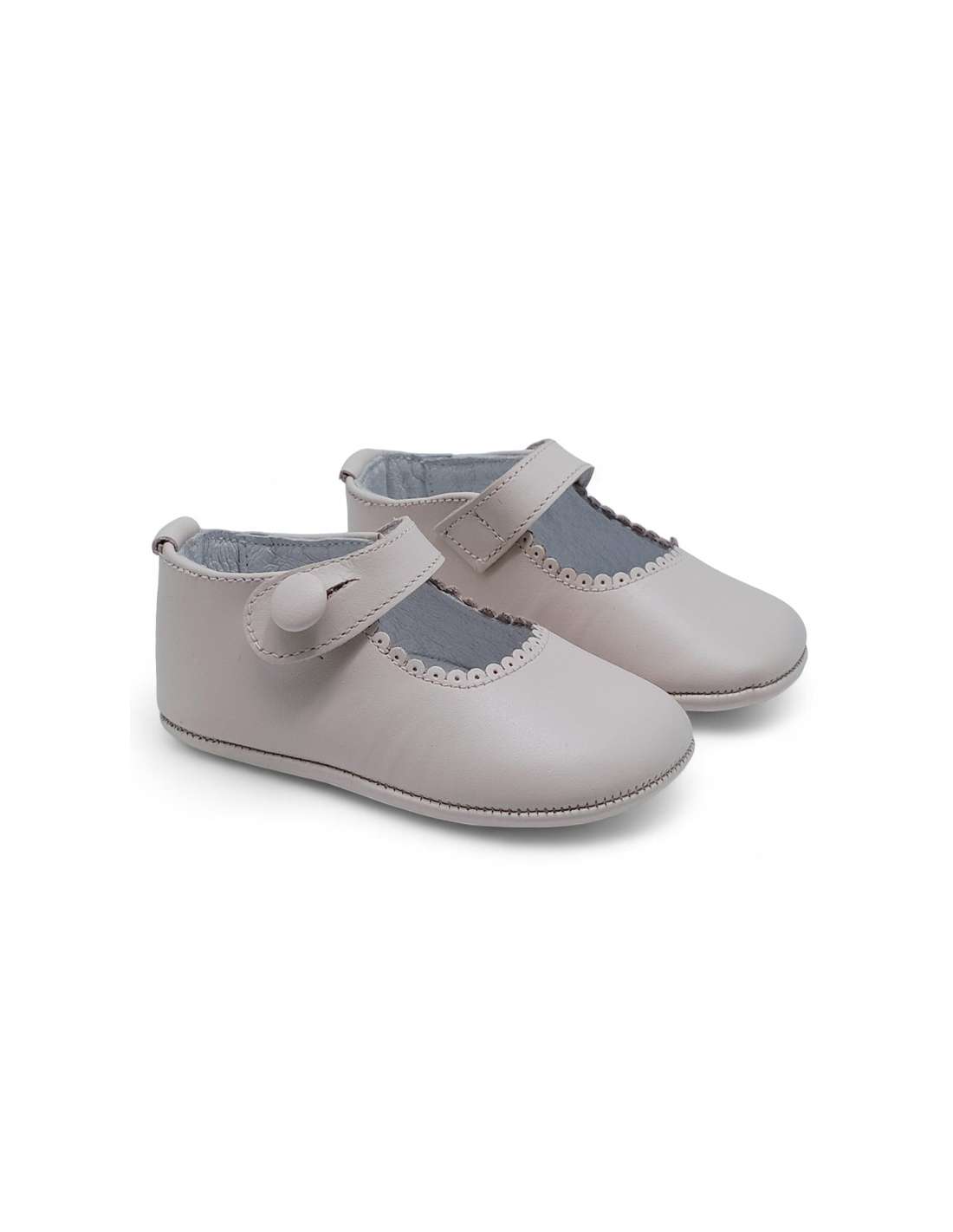 Timeless baby Mary Janes made of genuine leather in elegant pink (model 712B). Secure side button closure for comfort and style. Ideal for baby boutiques and children’s shoe retailers. Premium quality and available for wholesale orders.