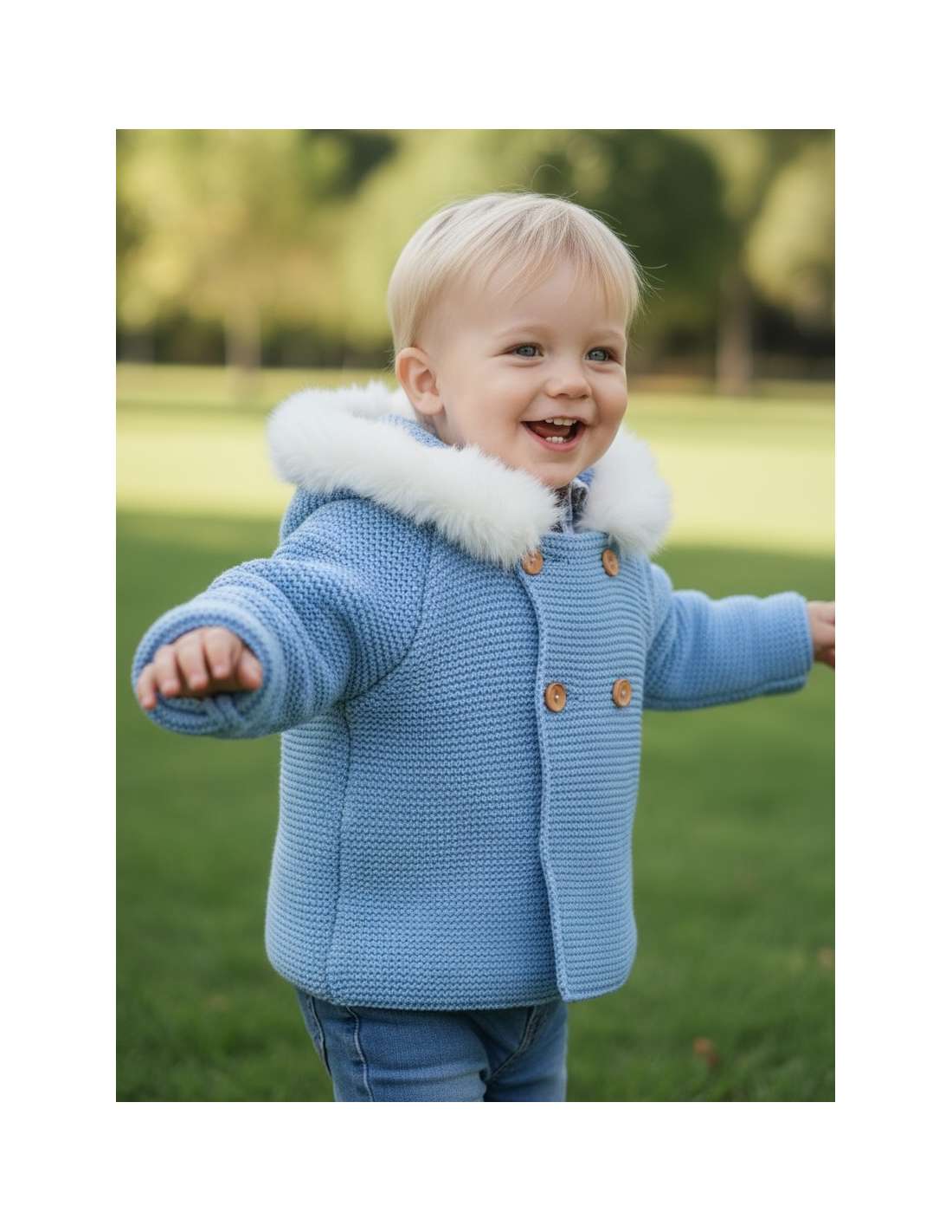 Wool and perle thread 550.2 BLUE KNITTED COAT WITH HOOD BRAND BABY FASHION 550.2 BLUE Made in Spain View 24 M 36 M