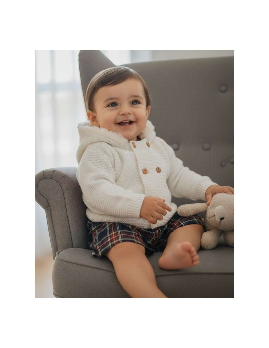550.12 BEIGE KNITTED COAT WITH HOOD