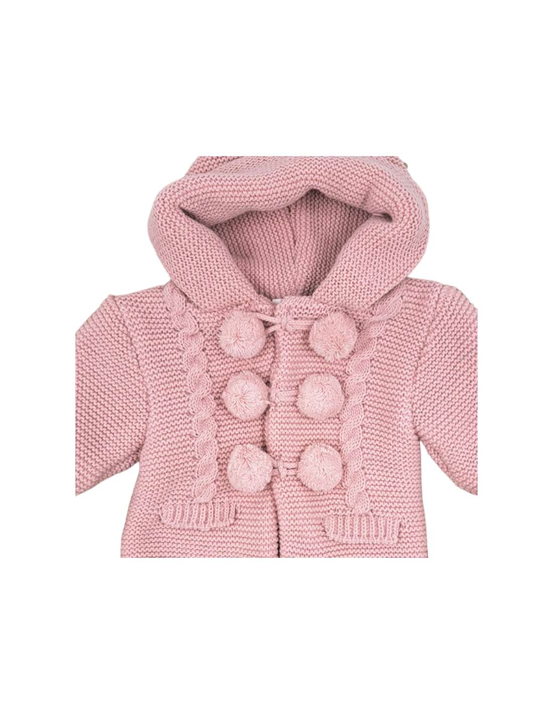 Soft and elegant dusty pink knitted baby coat with hood by Baby Fashion. Perfect to keep the baby warm and stylish with comfort. We offer wholesale sales and ship worldwide so you can receive our products wherever you are.