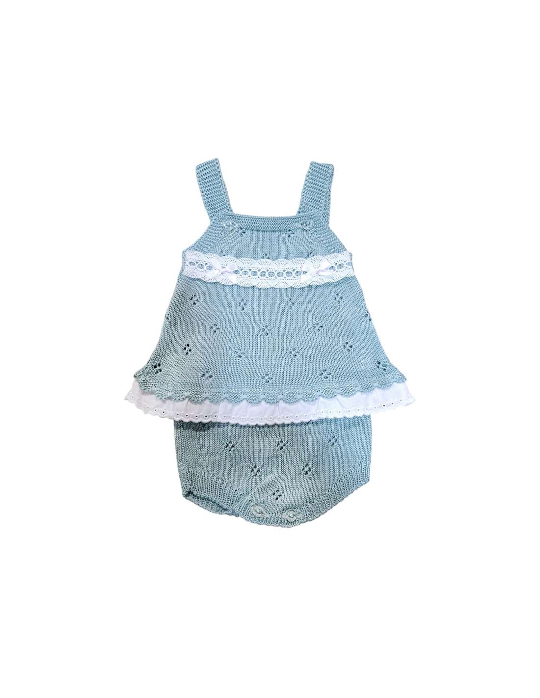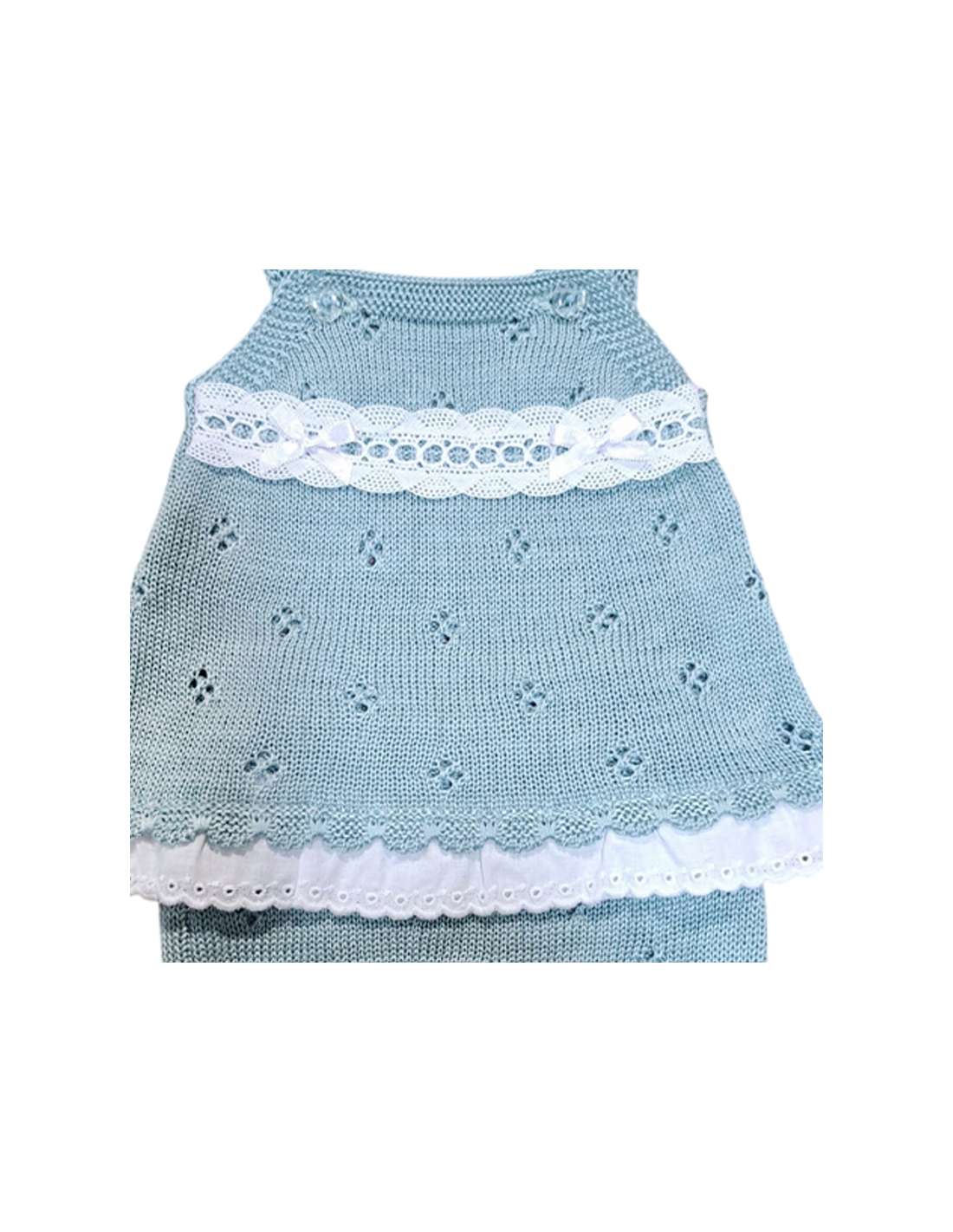 Wool and perle thread 03213C GREY KNIT BABY SET TWO PIECES BRAND LA CASITA DE PEPITO La Casita de Pepito 03213C GREY Made in Spain sweater and diaper cover View 0 M 1 M 3 M