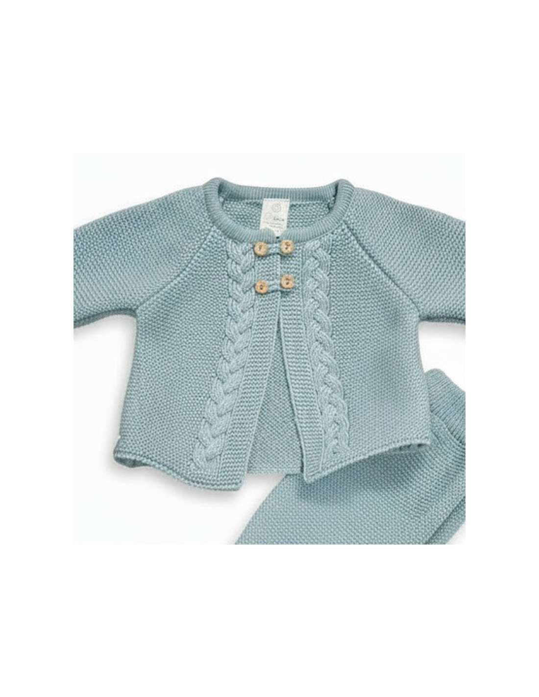 Wool and perle thread 3104 GREEN 2-piece knitted baby set BRAND MYBABYCHIC 3104 GREEN Made in Spain View 0 M 3 M
