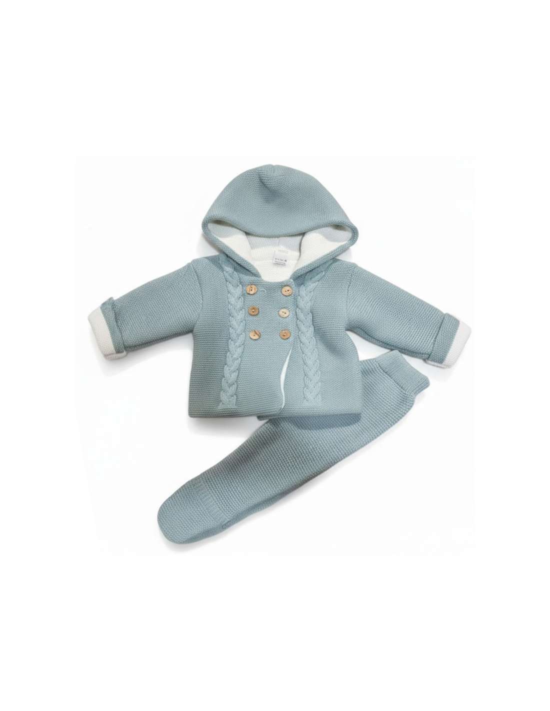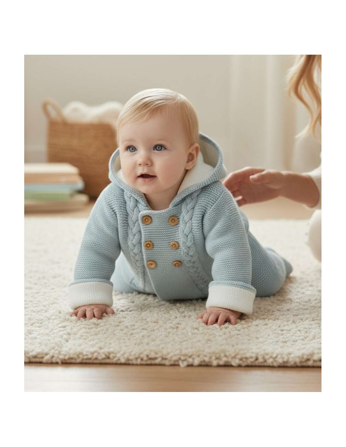 Wool and perle thread 550.2 BLUE KNITTED COAT WITH HOOD BRAND BABY FASHION 550.2 BLUE Made in Spain View 24 M 36 M
