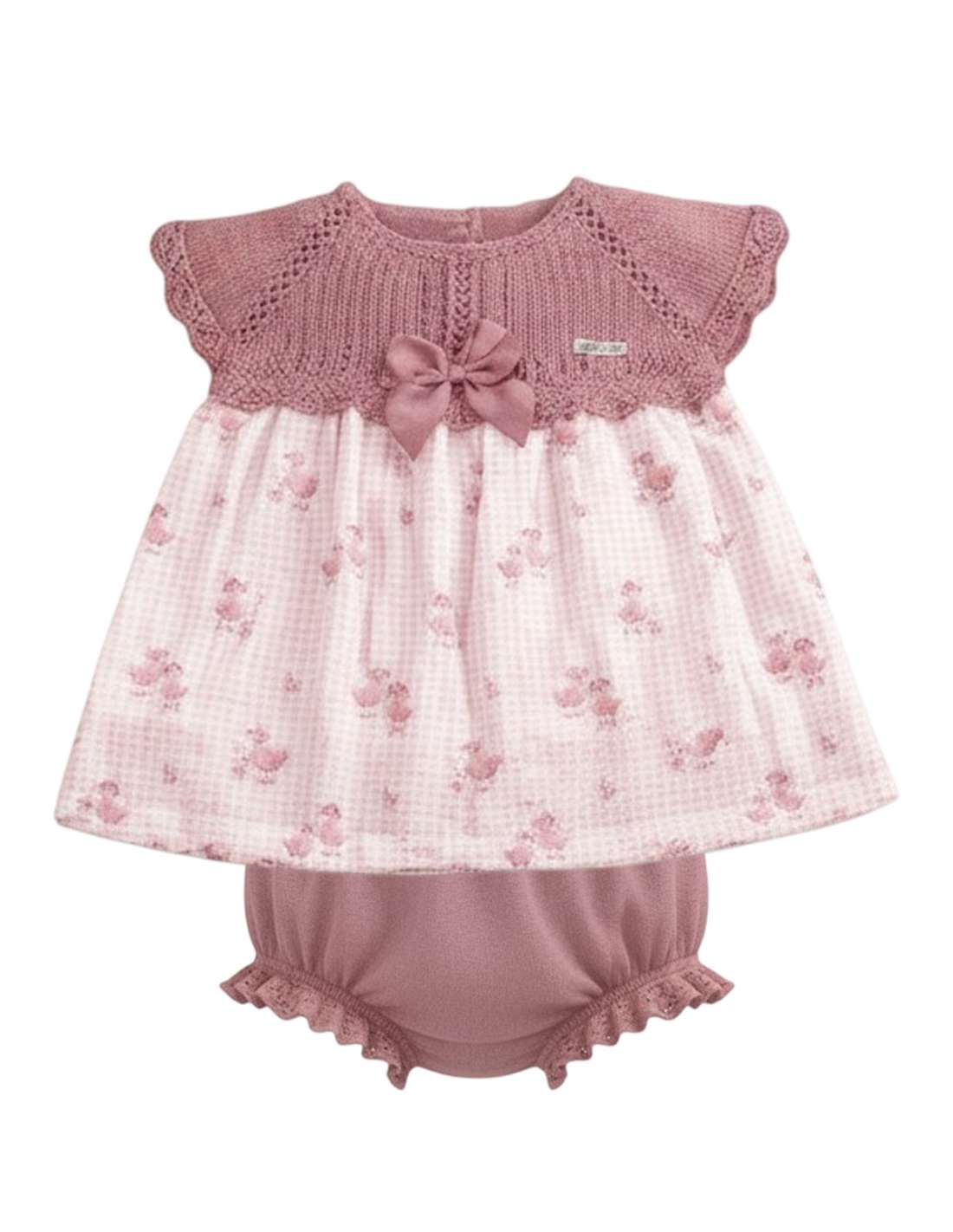 Wool and perle thread 3105 PINK 2-piece knitted baby set BRAND MYBABYCHIC 3105 PINK Made in Spain View 0 M 3 M