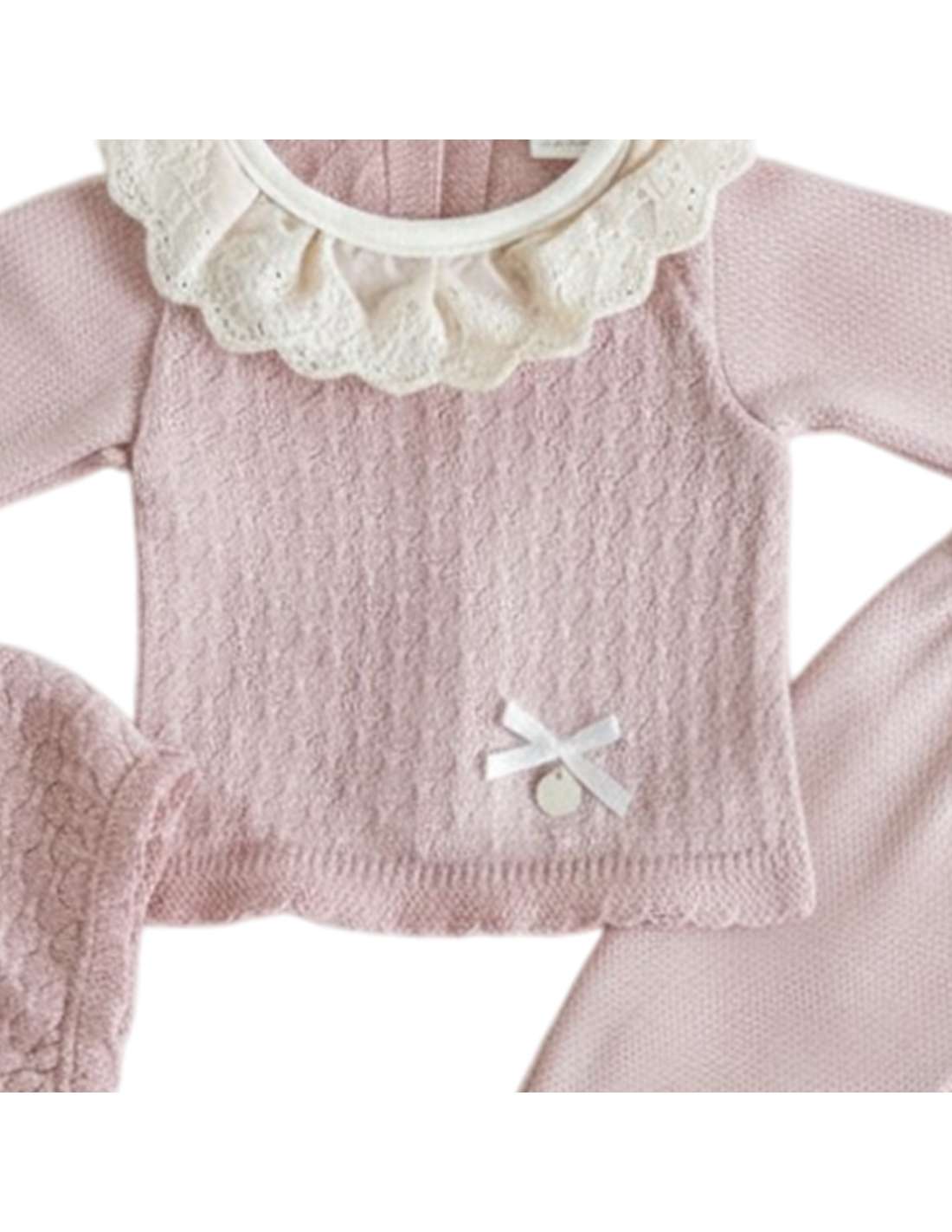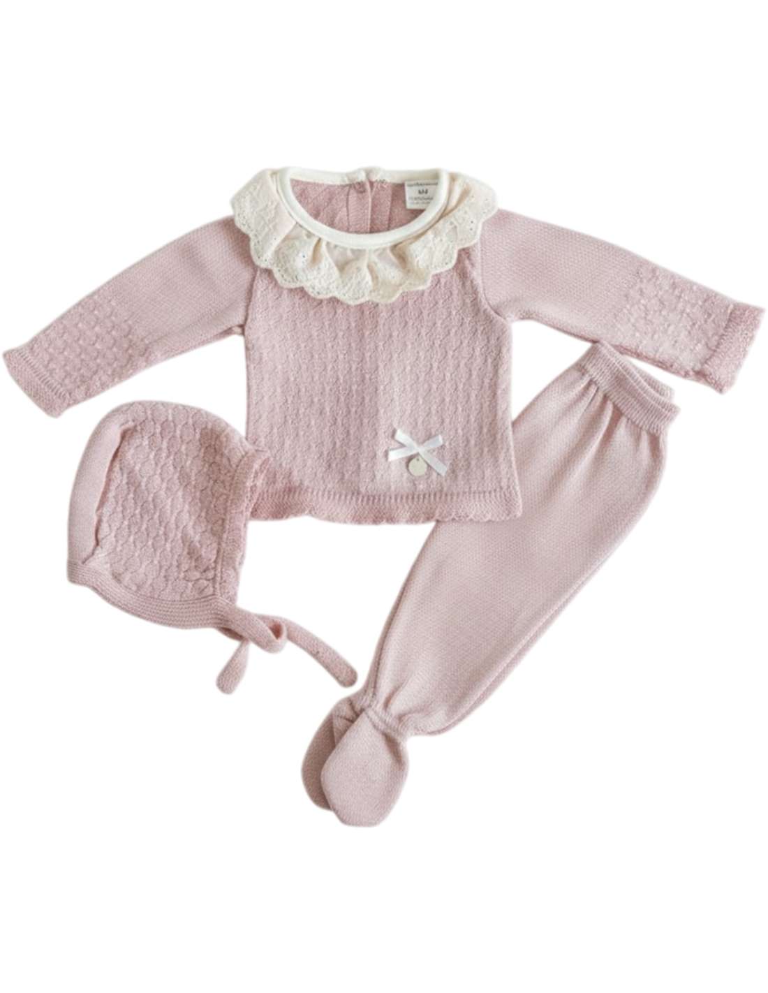 The baby knit set model 3102 – Casita de Pepito is made from soft and lightweight perlé fabric, designed to provide comfort, delicacy, and elegance for newborn babies.