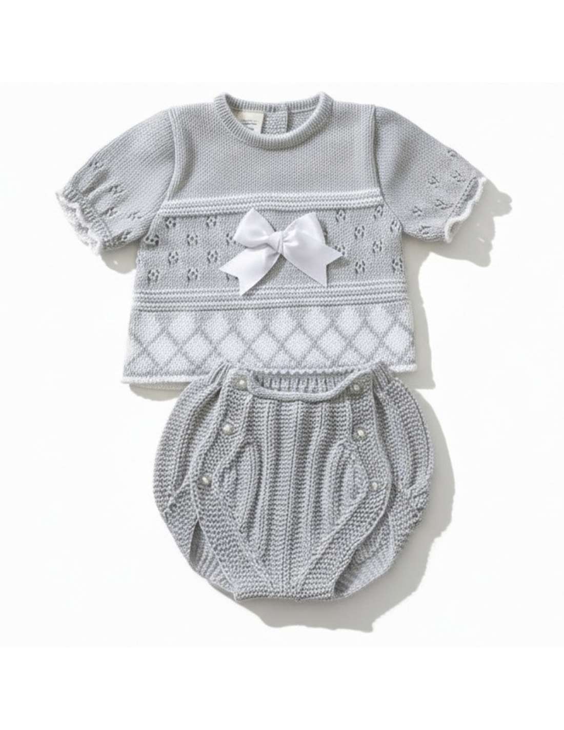 Wool and perle thread 3105 BLUE 2-piece knitted baby set BRAND MYBABYCHIC 3105 BLUE Made in Spain View 0 M 3 M