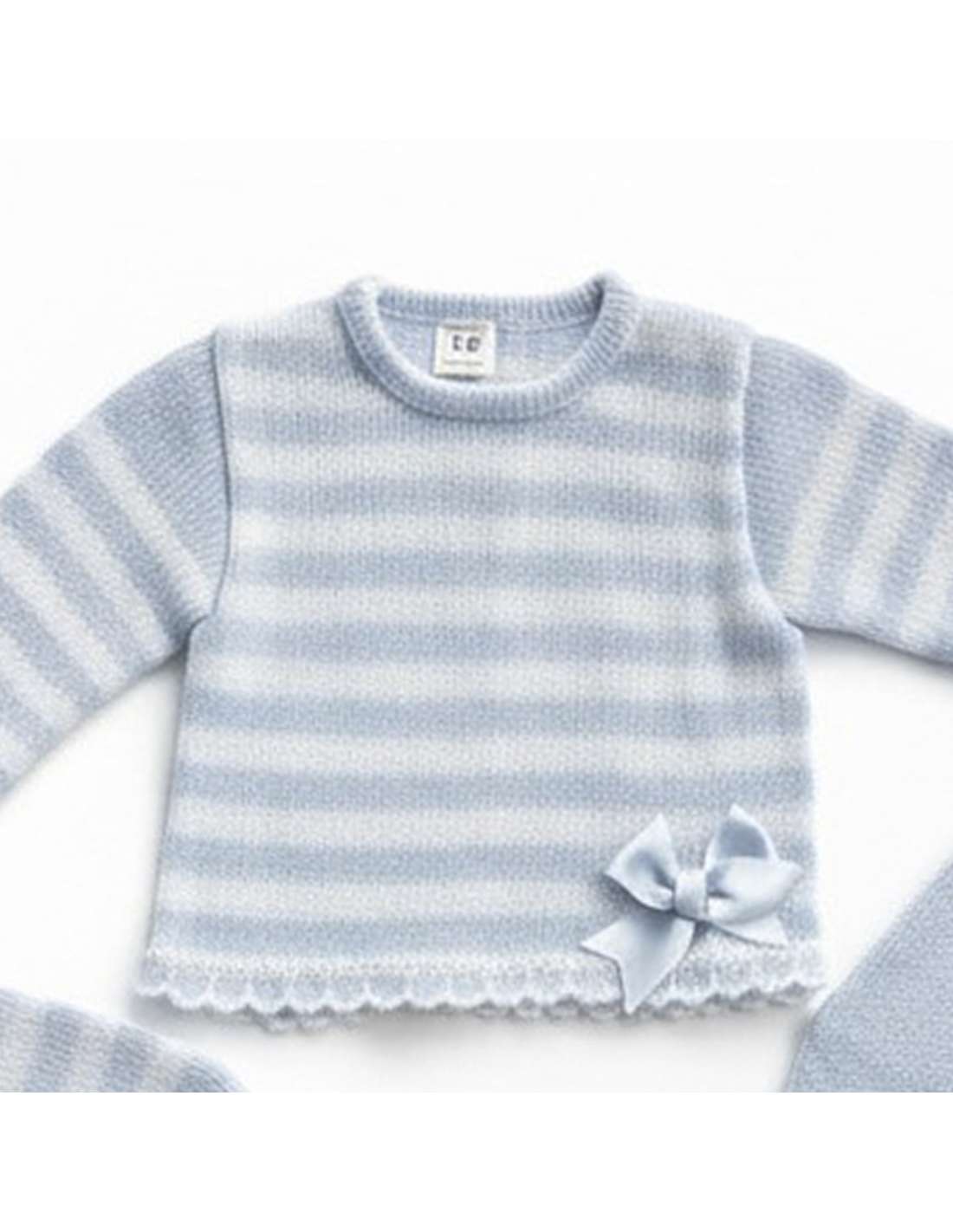 Wool and perle thread 03213C BLUE KNIT BABY SET TWO PIECES BRAND LA CASITA DE PEPITO La Casita de Pepito 03213C BLUE Made in Spain sweater and diaper cover View 0 M 1 M 3 M